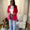 Le blazer Sylvia est la pièce parfaite pour apporter une touche de couleur et d’élégance à vos tenues. Avec sa coupe structurée et son tombé impeccable, il sublime instantanément la silhouette.