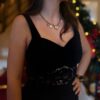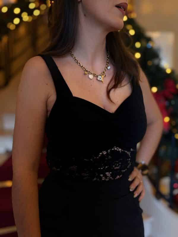 Associez-la à des sandales dorées ou argentées pour sublimer le contraste avec la dentelle. Côté bijoux, misez sur des pièces fines et lumineuses pour accompagner le décolleté sans le surcharger. Une jolie pochette métallisée fera toute la différence ✨