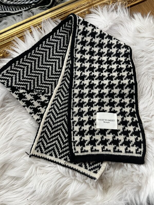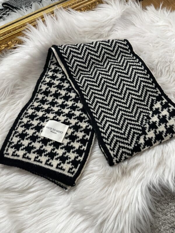 Apportez une touche d’élégance intemporelle à vos tenues avec cette superbe écharpe bicolore. Ses motifs pied-de-poule et chevrons s’accordent parfaitement pour un style chic et moderne. Douce et confortable, elle est idéale pour vous envelopper de chaleur tout en restant tendance.