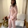 Disponible en jaune lumineux pour une touche audacieuse ou en rose doux pour une élégance délicate, cet ensemble sublime la silhouette tout en affirmant votre style. Le blazer structure le haut du corps tandis que le pantalon complète harmonieusement l’ensemble pour un rendu équilibré et raffiné.