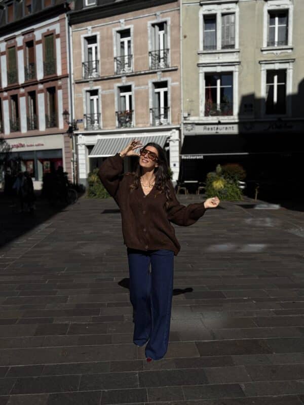 Disponible en brun, beige et bordeaux, il s’adapte à toutes vos envies : porté ouvert sur un top, ou fermé pour un look plus cocooning. Sa coupe actuelle en fait un allié parfait aussi bien avec une jupe qu’avec un jean.