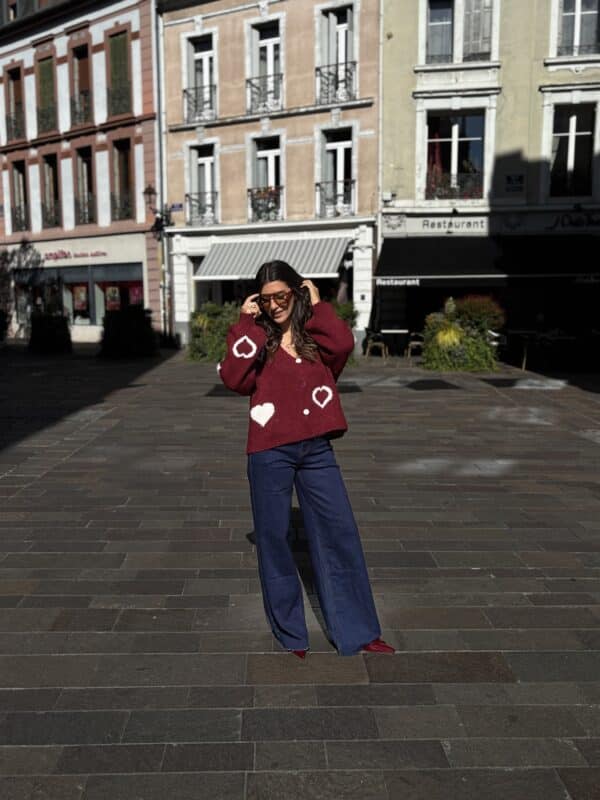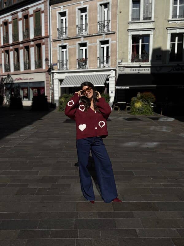 Le gilet INAYA est un véritable coup de cœur de la saison. Confectionné dans une maille douce et confortable, il se distingue par ses motifs cœurs qui apportent une touche romantique et tendance à vos tenues.
