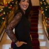 Sa coupe épurée, moderne et parfaitement structurée contraste avec la délicatesse de ses manches en dentelle florale, un détail qui apporte féminité et élégance sans jamais en faire trop.