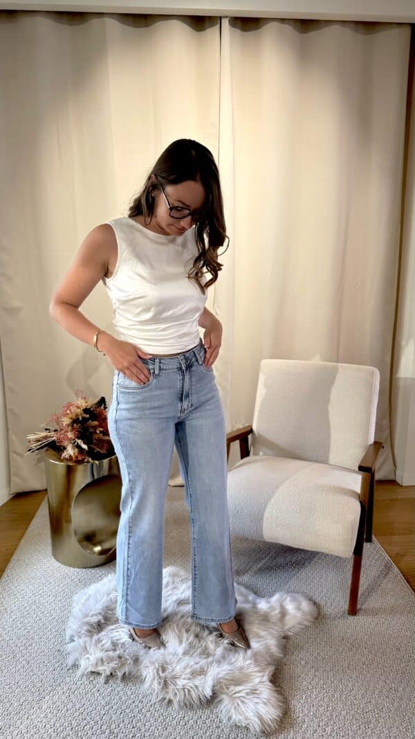 Son denim clair apporte une touche de fraîcheur, idéale pour illuminer vos tenues tout au long de la saison. Une pièce essentielle qui traverse les tendances avec simplicité et efficacité.