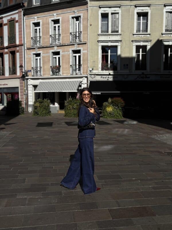 Le jean RAZETTE coupe flare en denim est un indispensable de la saison. Sa coupe légèrement évasée sur le bas des jambes allonge la silhouette et lui apporte une allure rétro-chic très actuelle.