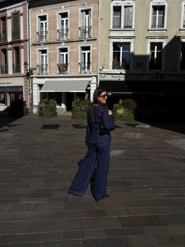 À porter avec la veste assortie pour un look coordonné ultra stylé, ou avec un simple pull pour un effet plus casual, ce jean séduit par son élégance et son confort.