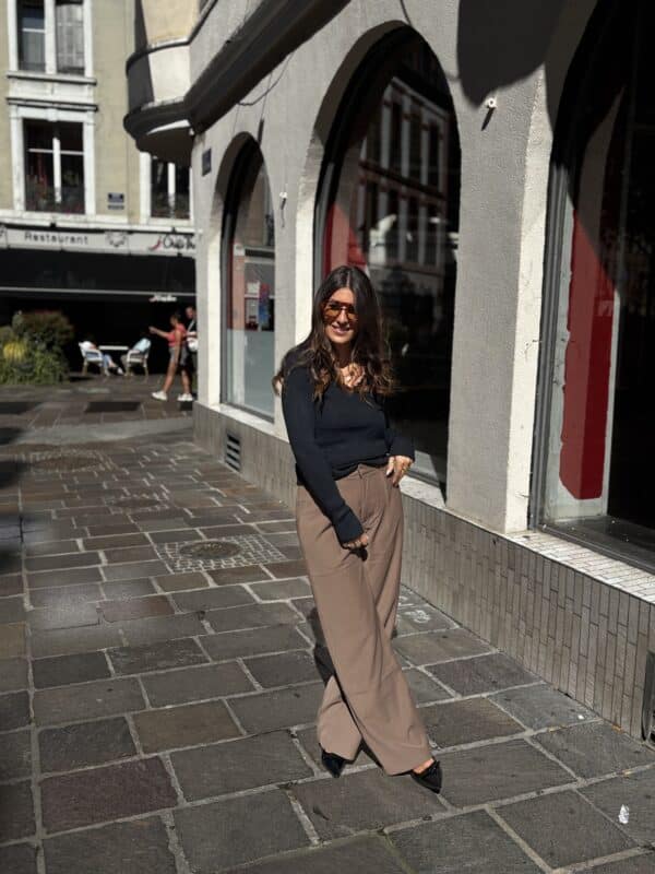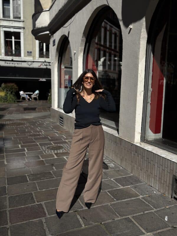 Ce haut beige chic se porte facilement avec un jean taille haute pour un style casual et tendance, ou avec une jupe ou un short noir et des talons pour une allure plus habillée. Grâce à sa polyvalence, il devient rapidement un indispensable de la garde-robe féminine.