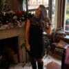 Le tissu légèrement texturé du bas de la robe ajoute du caractère tout en gardant une allure minimaliste et chic. Portée ici avec des bottes hautes noires, elle devient un look tendance, confortable et très facile à porter pour une journée élégante ou une soirée habillée.