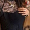 Voici CHANEL, la robe noire qui mêle élégance classique et détails raffinés.